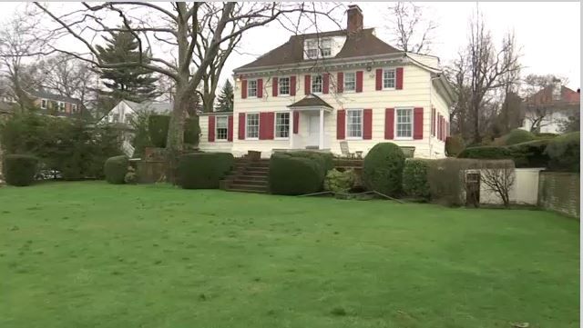 The Cornelius Van Wyck House in Douglaston overlooks Little Neck Bay on Long Island and exemplifies 18th-century Dutch Colonial style. The sitting room features Georgian fireplace mantels, and the house is surrounded by landscaped gardens leading to the beach.
