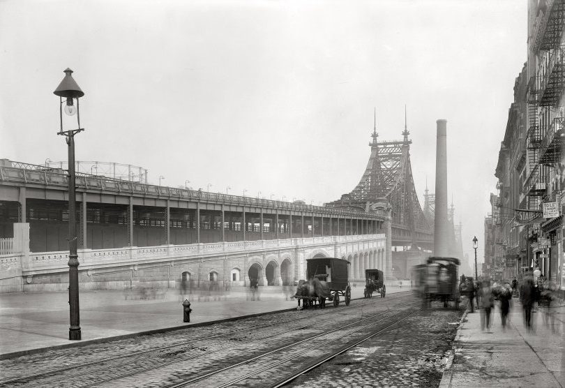 A trolley line connecting Manhattan and Roosevelt Island was operating above the Queensboro Bridge. Cars to and from Queens stopped in the middle of the bridge and people went down to the island in an elevator. That type of transportation existed in Queens until 1957. At that time, the streetcar line over Queensboro was the last one in the United States.